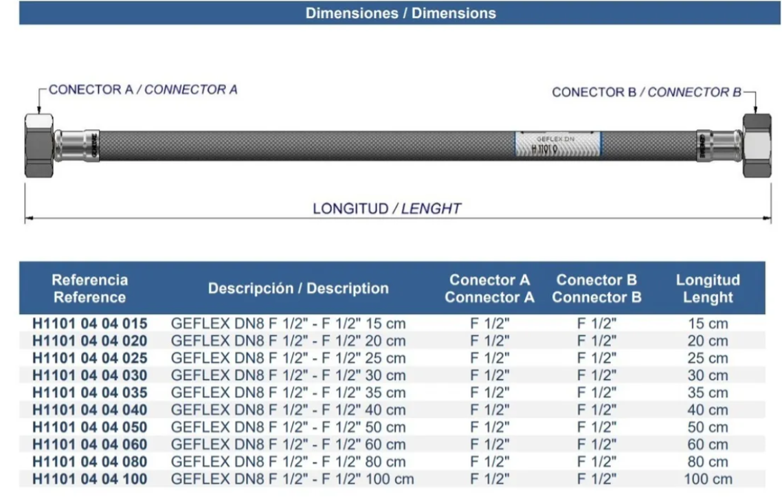 Conexiune flexibila apa dn 13 1/2" x 1/2" FF 70 cm Genebre