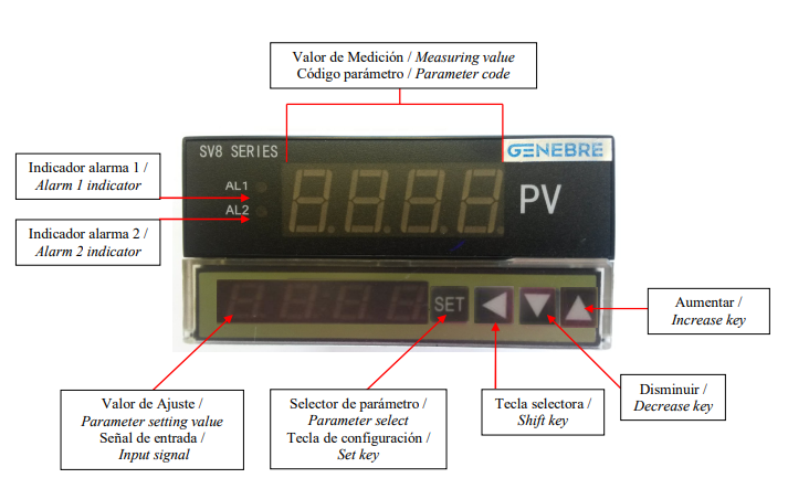 Бренд GENEBRE, Наименование румынское 8070 00 Indicator de intrare a 2 semnale 48х96 Genebre