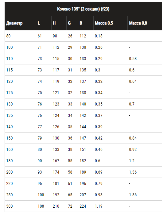 Бренд FERRUM, Наименование румынское Cot la 135° cos de fum (2 sectii) Ferrum D150 (0,5mm)