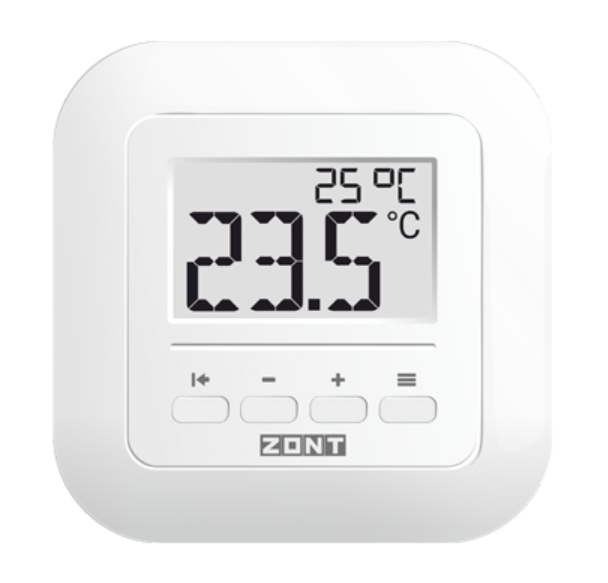 Комнатный термостат ZONT МЛ-332 предназначен для контроля температуры воздуха в отдельной зоне обогрева с отображением текущего и целевого значения температуры на дисплее. Ввод целевого значения температуры осуществляется вручную через термостат или дистанционно из сервиса ZONT. Для измерения температуры используется встроенный датчик воздуха NTC-10.