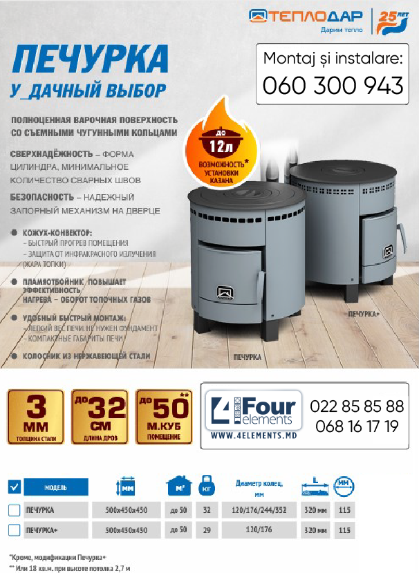 Cumpără Отопительно-варочная печь Теплодар ПЕЧУРКА 5 kW Codul produsului:4607151293549