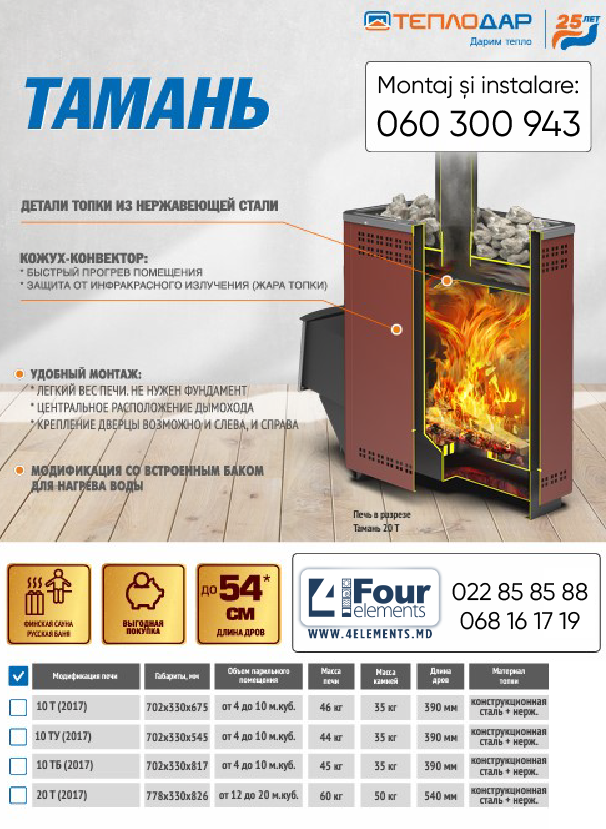 Бренд ТЕПЛОДАР, Наименование румынское Soba de saună Teplodar TAMANI 10 Т 10 kW