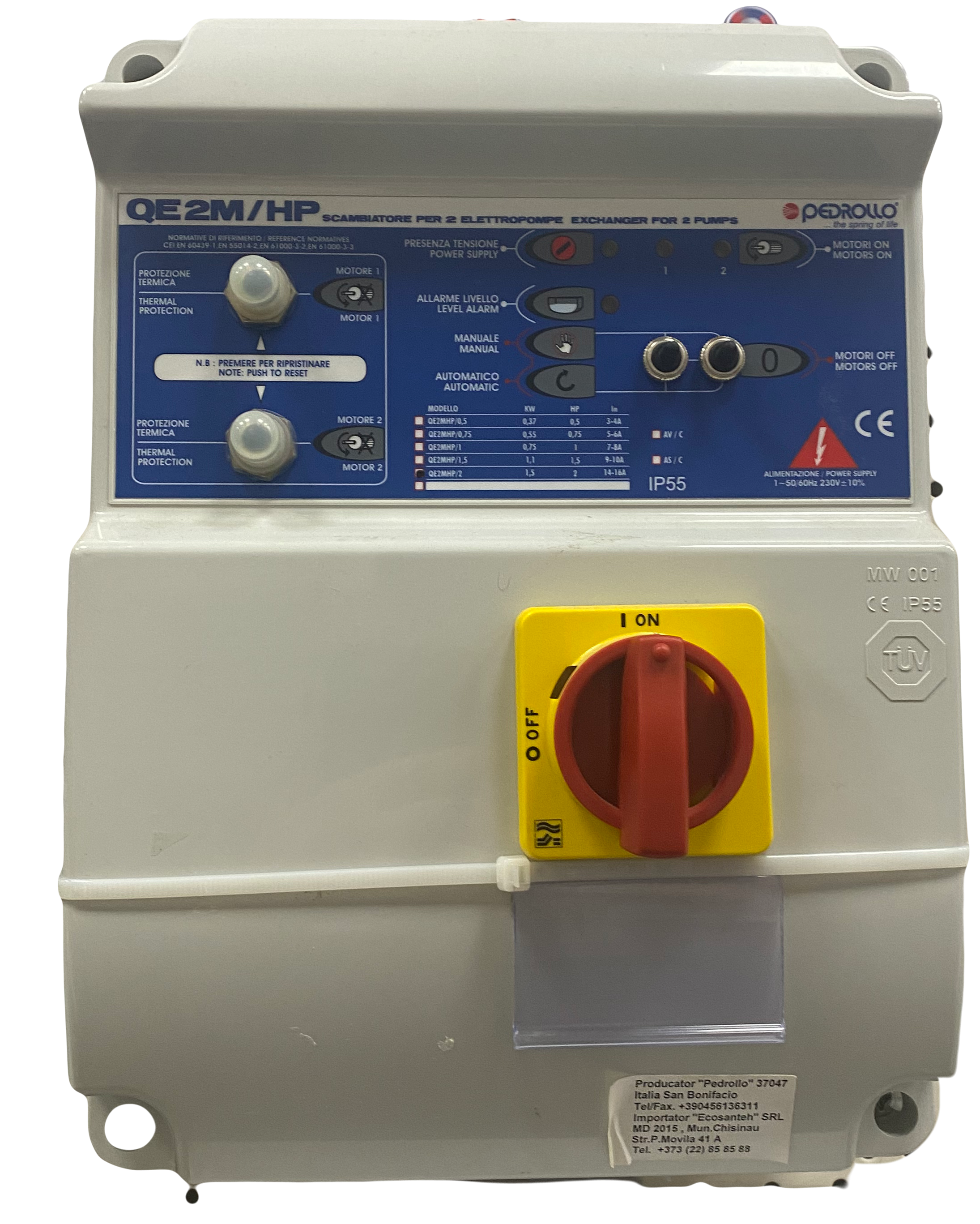 Cumpără Panoul de control monofazat (2.3 kW) QE2M/2HP Pedrollo Codul produsului:54CB2QEM020