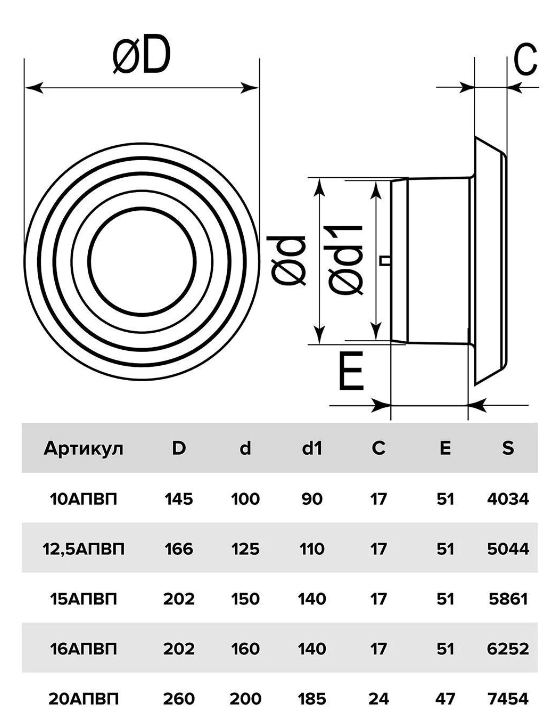 Возможна регулировка потока воздуха вращением центральной части клапана. АПВП имеет фланец для соединения с круглым воздуховодом. Анемостаты серий АПВП полностью изготавливаются из пластика, благодаря чему не подвержены коррозии.