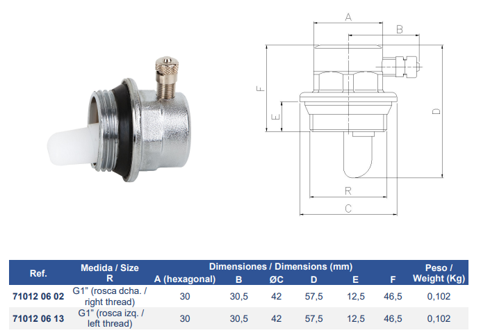 Купить Автоматический спускник воздуха (левая резьба) Genebre Код товара:71012 06 13