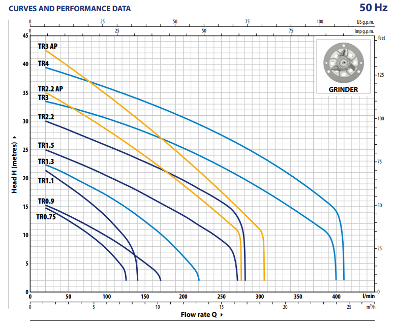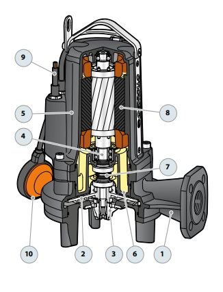 Насосы серии TRITUS изготовлены из толстого чугуна, что обеспечивает исключительную прочность, стойкость к абразивному износу и долговечность. Они оснащены прочным закалённым лезвием из нержавеющей стали, специально разработанным для измельчения твёрдых частиц и волокон, содержащихся в бытовых и коммунальных сточных водах и канализации. Насосы предназначены для подачи под давлением в канализационные системы через трубы малого диаметра.