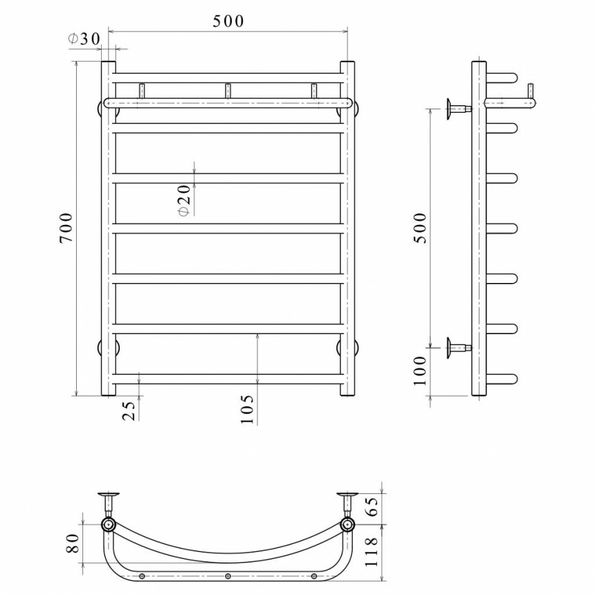 Электрический полотенцесушитель Классик 500x700x5 Deffi