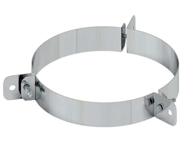 Элемент для фиксации дымохода при возвышении над поверхностью кровли более чем на 1 м. Обновленный элемент состоит из 3-х полукруглых секций, скрепленных болтами. Подходит к большинству такелажных креплений и идеально адаптирован для опоры телескопической FERRUM.