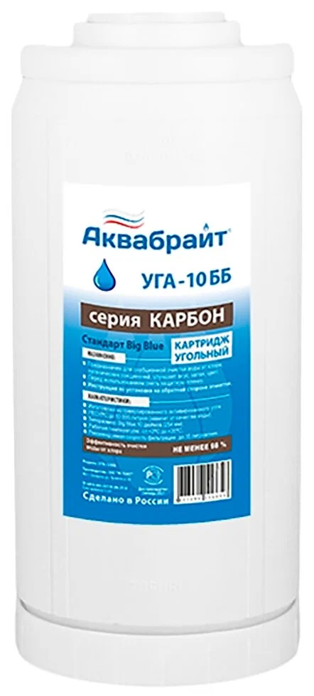 Картридж АКВАБРАЙТ УГА-10 ББ изготовлен из гранулированного активированного угля с пищевым допуском.
