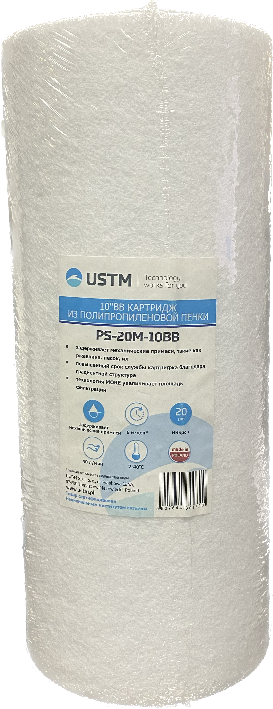 Купить Картридж полипропилен Big Blue 10'', 20mcr USTM Код товара:PS-20M-10BB