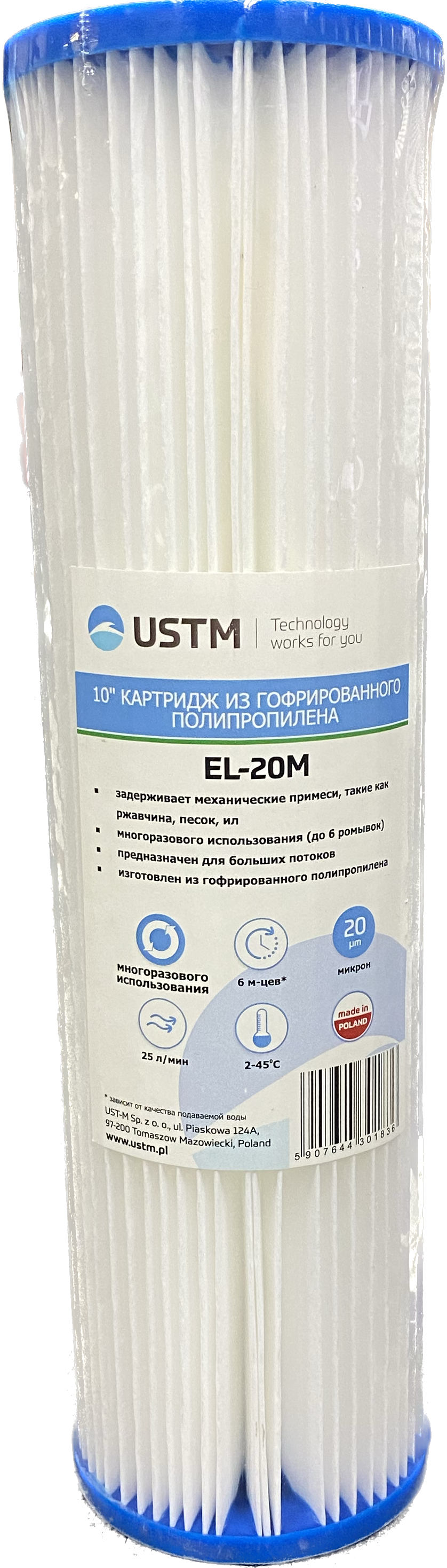 Купить Картридж полипропилен гофр.10'', 20mcr USTM Код товара:EL-20M