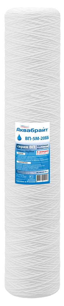 Картридж АКВАБРАЙТ ВП-5М-20ББ изготовлен из веревочного полипропилена с пищевым допуском.