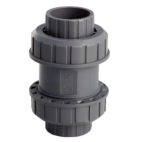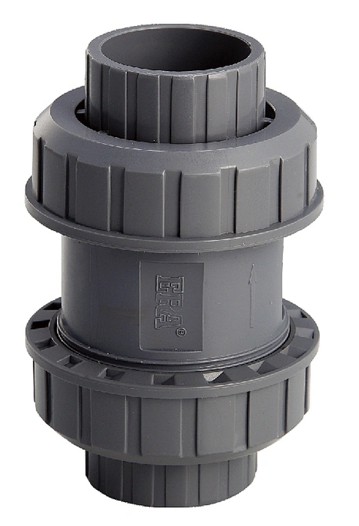 Арматура из ПВХ разборного типа True Union для бассейновых трубопроводов. Краны предназначены для перекрытия потока и обслуживания участков без демонтажа всей линии, а обратные клапаны — для защиты от обратного потока. Концы — DIN socket под склейку, корпус — ПВХ, исполнение черно-серое; у кранов рукоятка красная (в зависимости от модели). Удобны для монтажа в узлах насосной, фильтрации и распределения.