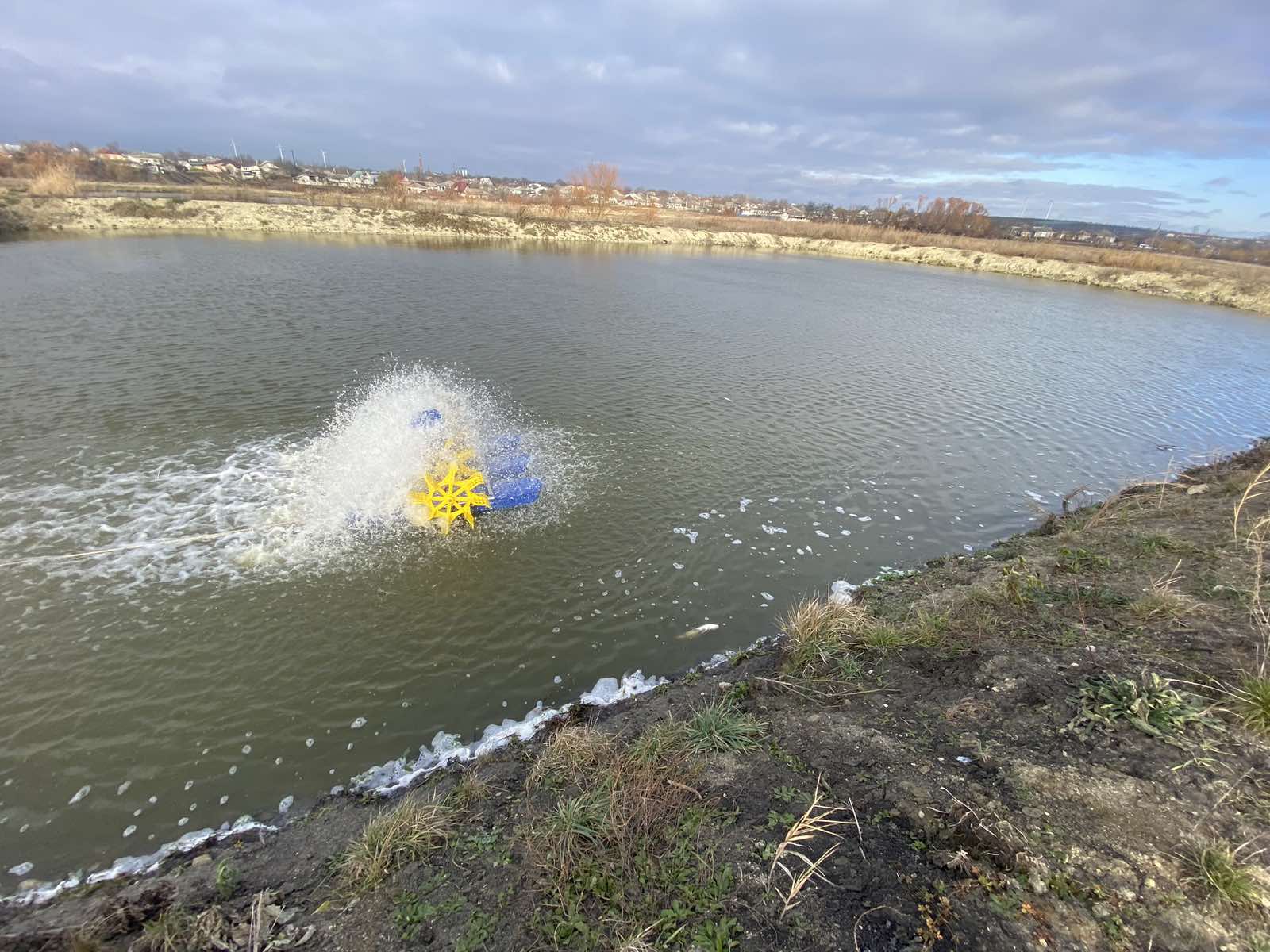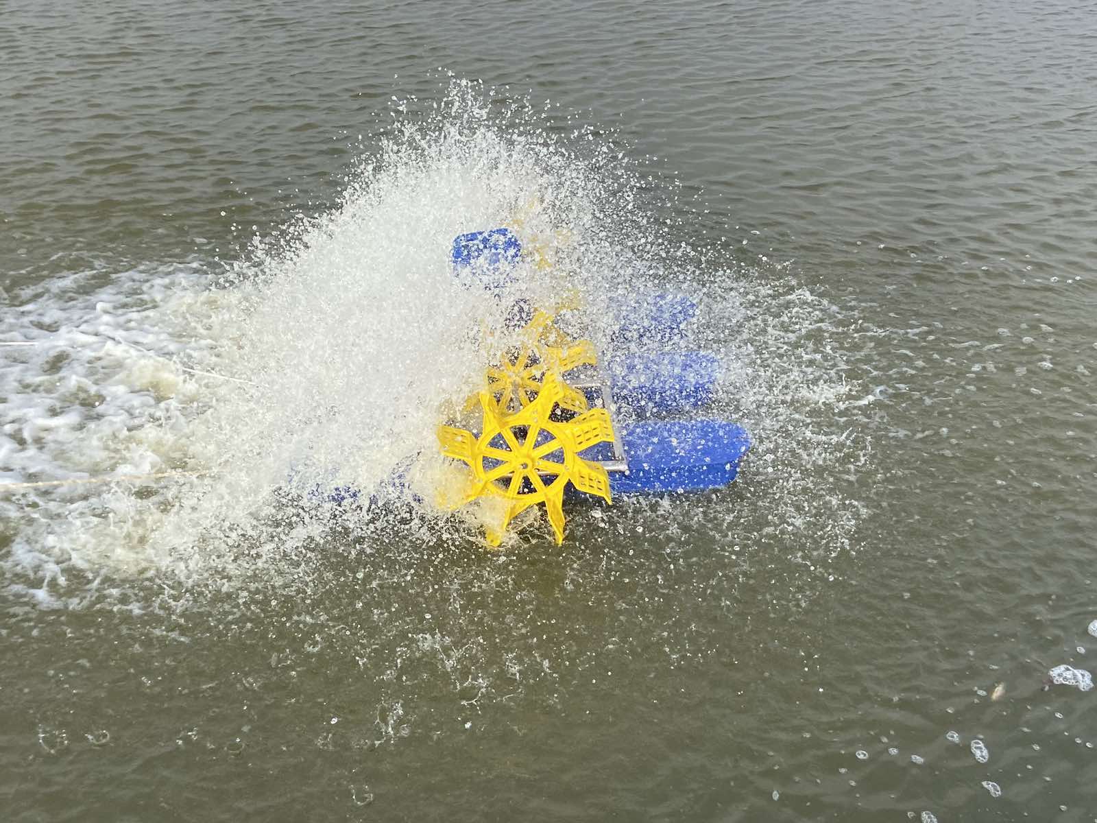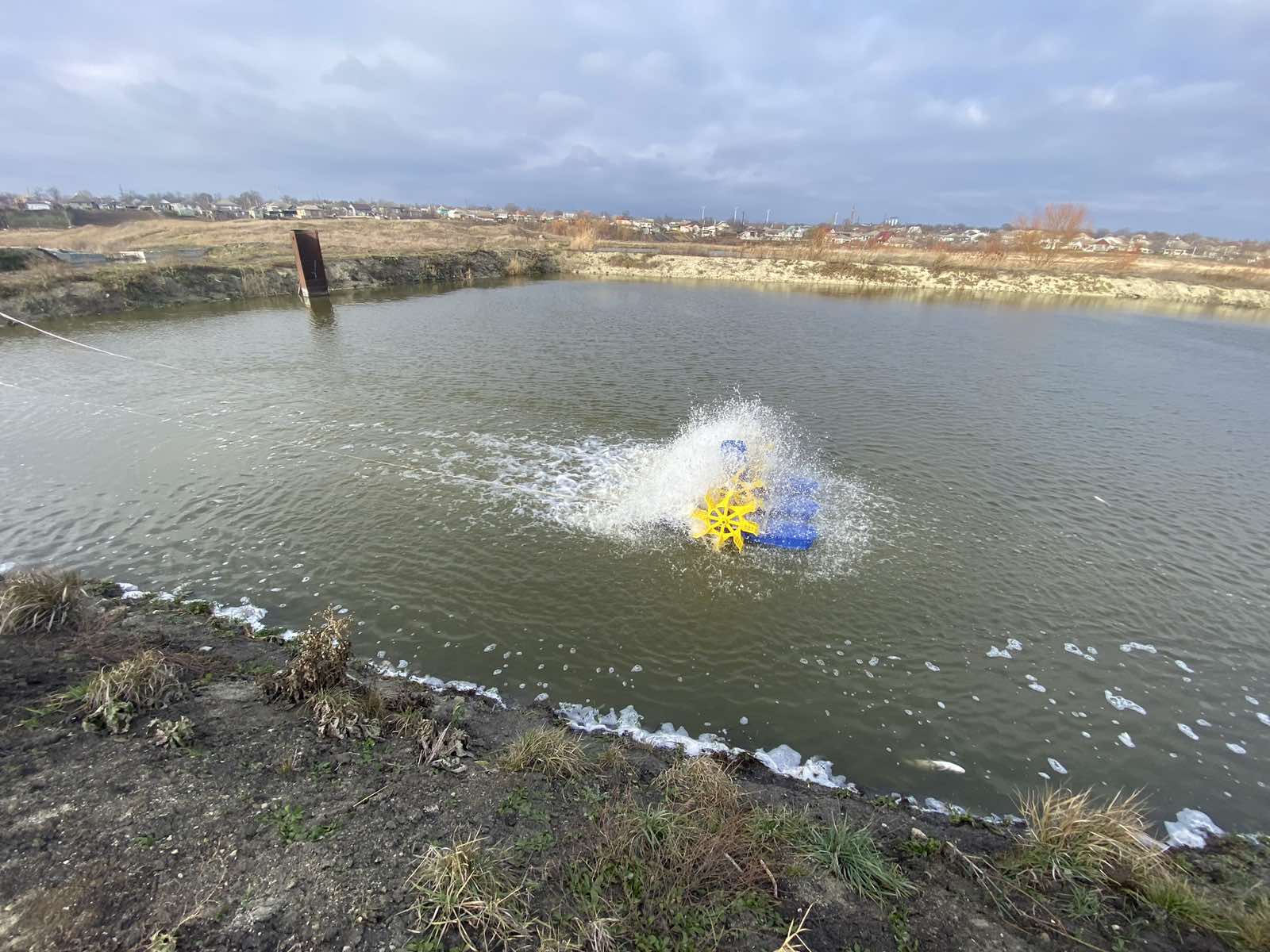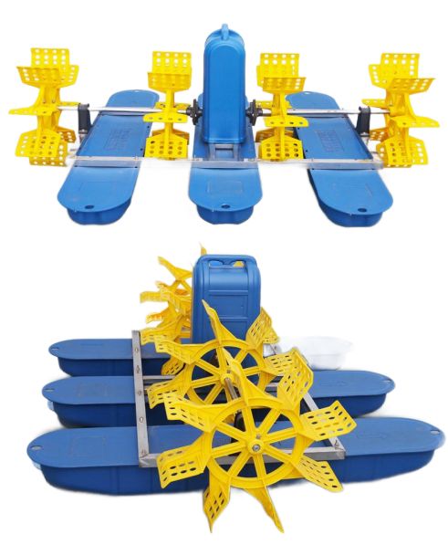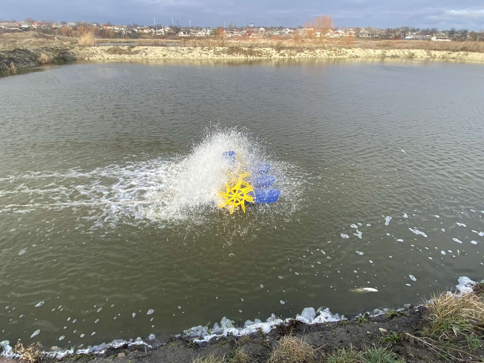 Высокоэффективный аэратор для любых водоемов, включая и неглубокие. Применяется в аквакультуре, в любых водоемах, включая и неглубокие. Создает течение, охватывающее верхние слои воды, мало взмучивают воду. Зимой аэратор этого типа не применяется, так как образование льда на лопастях колес может вызывать их поломку. Во всех других случаях колесный лопастный аэратор является хорошим выбором.