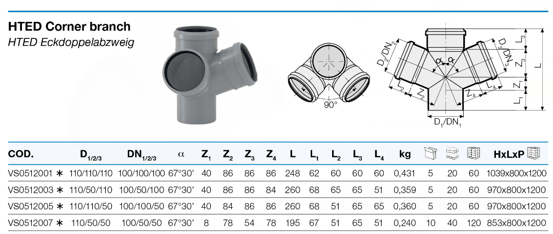 Купить Крестовина двух плоскостная 110/110/50 угол 67°(лев) HTED Valsir Код товара:VS0512005
