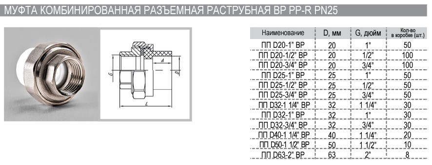 Муфта комб. разъем.(американка) 20х3/4F PN25 РВК