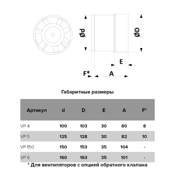 Вентилятор VP 5 применяется для постоянной или периодической вентиляции санузлов, душевых, кухонь и других бытовых помещений. Устройство работает как в вытяжной, так и в приточной вентиляции в зависимости от установки. Используется в системе пластиковых или гибких каналов. Крепиться при помощи саморезов (не входят в комплект).