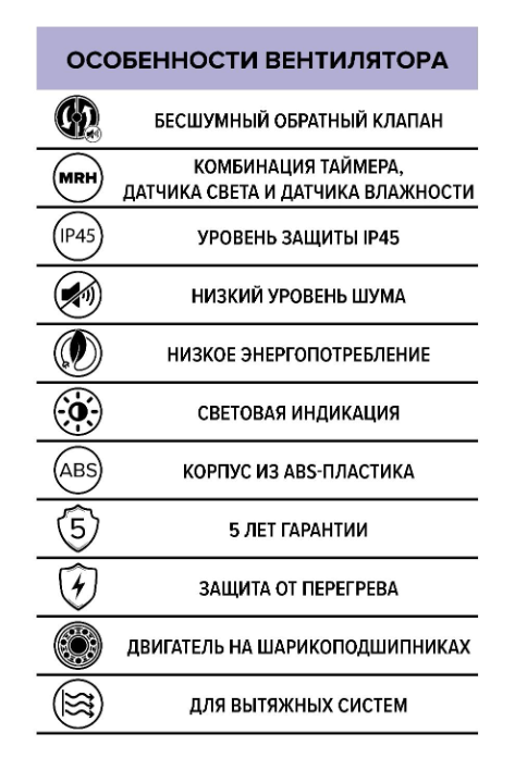 Вентилятор оборудован технологичной мультиопционной платой управления SHT с датчиком влажности, света и таймером с возможностью настройки необходимого времени работы.