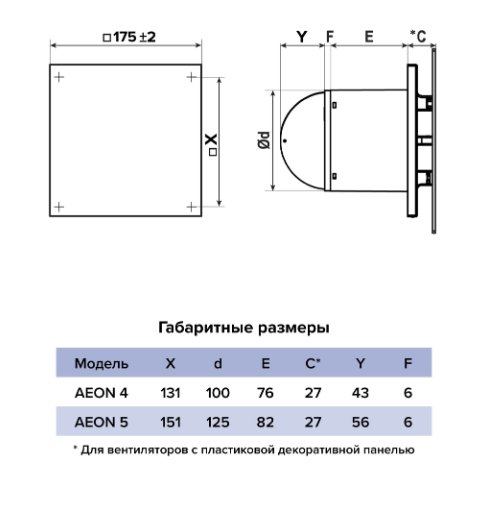 Декоративная панель из ABS‑пластика предназначена для всех моделей вентиляторов AEON.