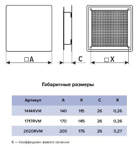 Квадратная вентиляционная решетка RVM из стали используется для потолочного и настенного монтажа в приточно-вытяжных системах вентиляции для декорирования и скрытия любых ниш, вентиляции шкафов и гардеробных.