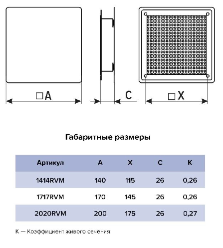 Квадратная вентиляционная решетка RVM из стали используется для потолочного и настенного монтажа в приточно-вытяжных системах вентиляции для декорирования и скрытия любых ниш, вентиляции шкафов и гардеробных.