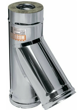 Сэндвич тройник на 135 градусов - имеет те же самые функции, что и тройник на 90 градусов только угол подключения у него 135 градусов. Создает более наклонный по логики участок в котором меньше накапливается мусор и он больше сыпется в низ, ну а также можно и ревизию провести от сюда и подключить, в том числе два прибора - подключаются с применением именно этого элемента. Но только не забывайте что нужно рассчитывать какое сечение общего дымохода и какие сечения приходят с одной и с другой стороны.