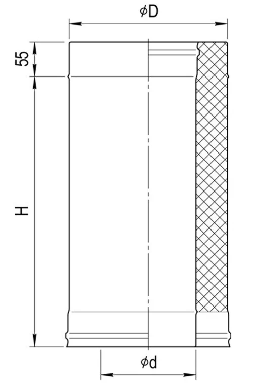 Двустенный дымоход или сэндвич представляет собой конструкцию, которая состоит из двух наделенных разными диаметрами труб (внешней и внутренней). Пространство между этими трубами наполнено теплоизоляционным материалом негорючего свойства из базальтового волокна высокого качества. За счет такой конструкции происходит быстрый нагрев внутренней трубы, что впоследствии дает возможность за короткий промежуток времени после старта поднять температуру в дымоходе выше «точки росы», тем самым избежав образования конденсата.