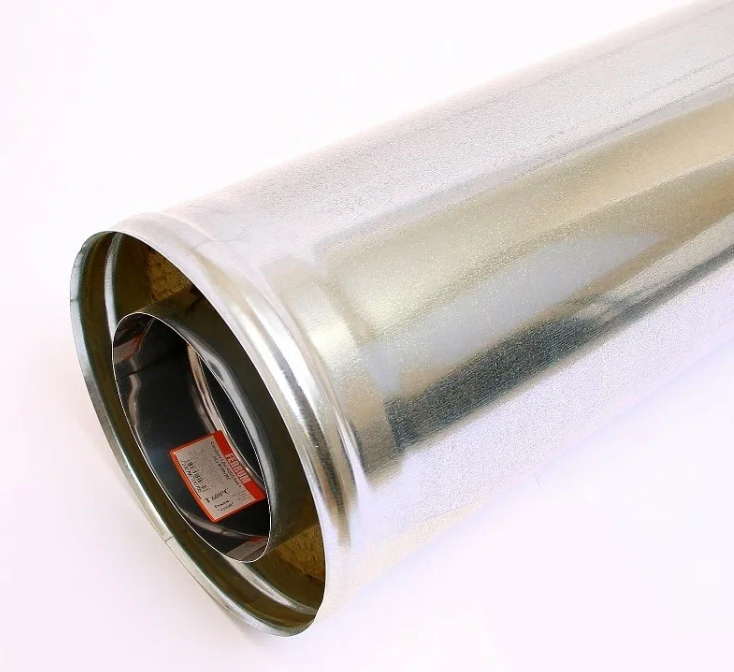 Двустенный дымоход или сэндвич представляет собой конструкцию, которая состоит из двух наделенных разными диаметрами труб (внешней и внутренней). Пространство между этими трубами наполнено теплоизоляционным материалом негорючего свойства из базальтового волокна высокого качества. За счет такой конструкции происходит быстрый нагрев внутренней трубы, что впоследствии дает возможность за короткий промежуток времени после старта поднять температуру в дымоходе выше «точки росы», тем самым избежав образования конденсата.