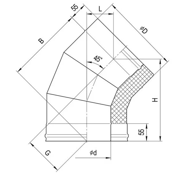 Сэндвич-колено для дымохода 135° Ferrum (430/0,8мм) D150x210