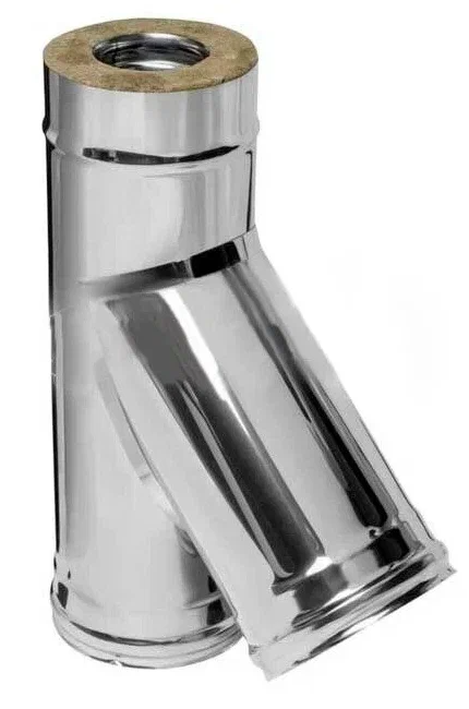 Предназначен для изменения направления дымового канала, используется в местах присоединения теплогенерирующего аппарата к основному каналу. Выполняет функцию очистного приспособления, облегчает обслуживание дымохода. Сэндвич-тройник 135° обеспечивает более плавный поворот печных газов, чем Сэндвич-тройник 90°, тем самым обеспечивая наилучшую тягу в дымоходе и препятствуя осаждению сажи в местах изгиба. При использовании элемента Сэндвич-тройник 135° в конструкции дымохода возникает сложность в монтаже элемента и обеспечения пожаробезопасного прохода через стену помещения, т. к. стандартного заводского потолочного проходного узла для угла 135° нет.