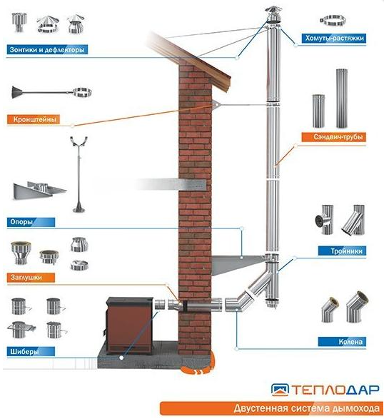 Изделия производства компании «Теплодар» обеспечивают полный и качественный отвод продуктов горения и гарантируют пожаробезопасность объекта. Сэндвич-дымоход: