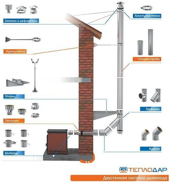 Изделия производства компании «Теплодар» обеспечивают полный и качественный отвод продуктов горения и гарантируют пожаробезопасность объекта. Сэндвич-дымоход: