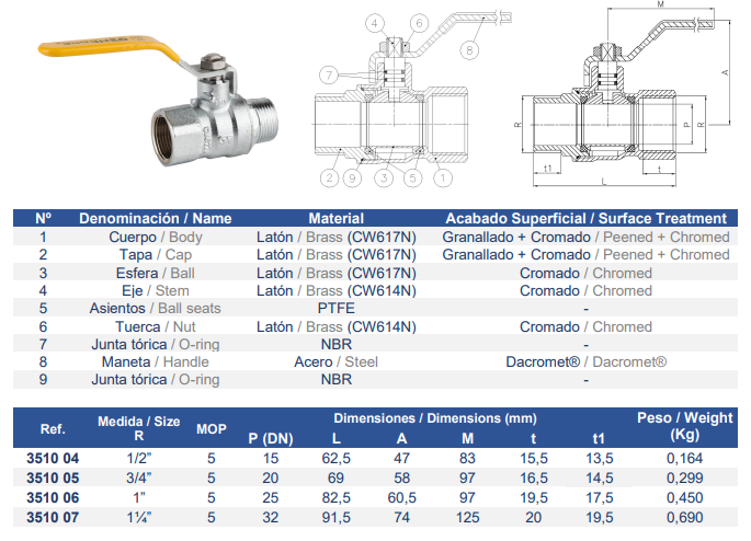 Robinet cu bilă cu mâner pentru gaz 3/4" MF (crom) Genebre