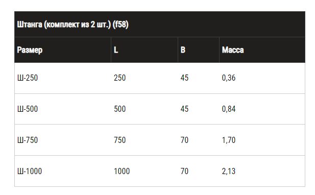 В комплекте 2 штанги - левая и правая и набор крепежных элементов (болты, шайбы, гайки).