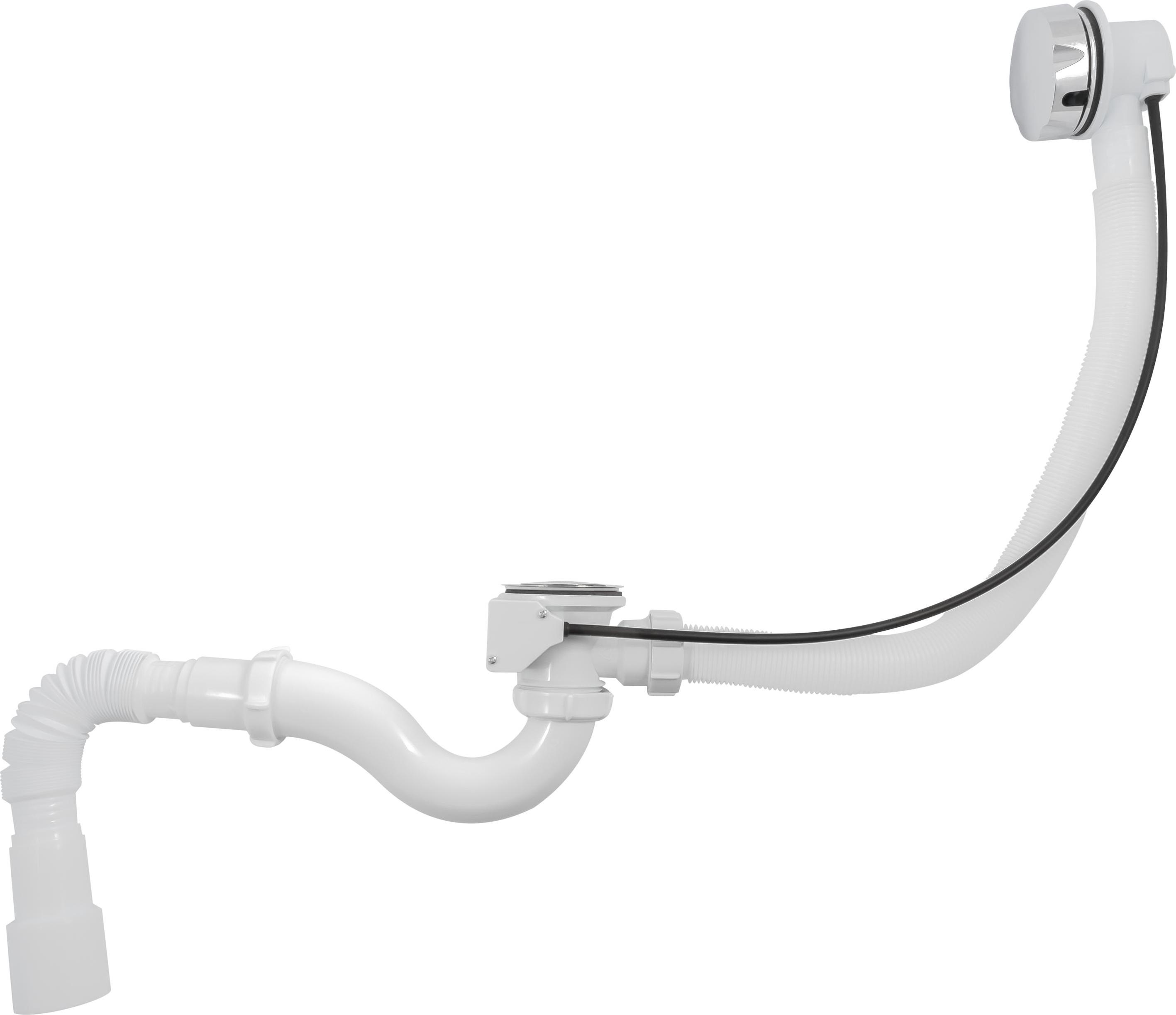 Сифон для ванны с переливом полуавтоматом с г.т 40х40/50 белый, Aquant