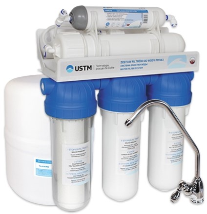 Системы обратного осмоса USTM RO5-EMI. Имеет 5 фильтра предварительной очистки и линейный фильтр, которые обеспечивают высокую эффективность очистки воды. Она также позволяет получать до 280 литров воды в день, что является достаточным количеством для бытового использования.