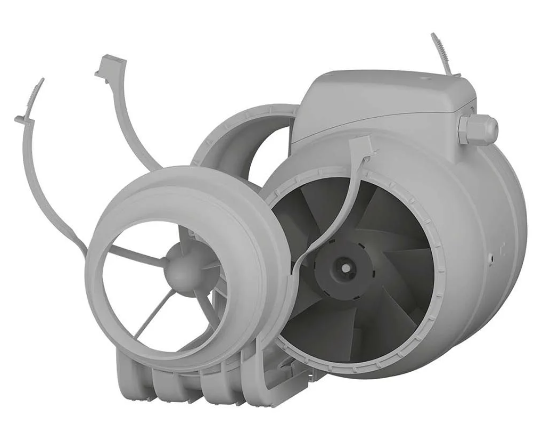 Канальные осевые вентиляторы смешанного типа предназначены для приточно-вытяжных систем вентиляции промышленных, общественных и жилых зданий. Съемный центральный блок с двигателем, крыльчаткой и клеммной коробкой крепится к патрубкам хомутами. Это существенно упрощает обслуживание. Вентиляторы имеют две скорости, которые переключаются путем подключения проводов к колодкам, расположенным в клеммной коробке. Возможна установка кнопки (в комплекте). Асимметричная форма клеммной коробки облегчает подключение сетевого провода. Двухскоростной однофазный двигатель на шарикоподшипниках с длительным сроком службы. Имеет встроенную тепловую защиту с автоматическим перезапуском. Вентиляторы подходят для горизонтального и вертикального монтажа. Крепление к месту монтажа осуществляется при помощи саморезов.