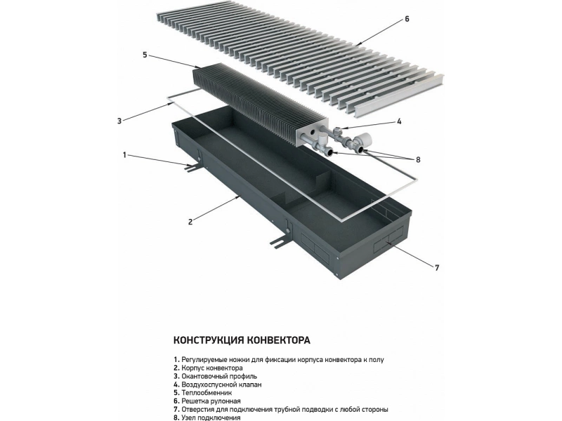 Встраиваемый конвектор KVZ 250-140-2100/Ч (1248W) Techno