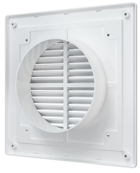 Купить Вытяжная вентиляционная решетка из АБС-пластика с рамкой Mistral 21х21 D125 White Код товара:2121R12F