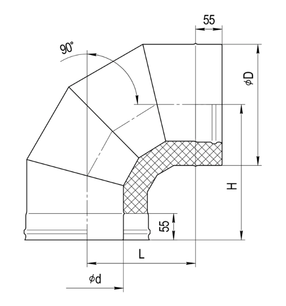 Cot izolat cos de fum la 90° Ferrum (430/0,5мм) D180x280