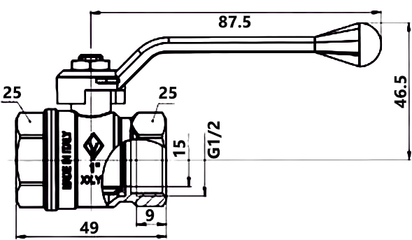 Бренд BUGATTI VALVOSANITARIA, Наименование румынское Шаровый кран с ручкой 1/2" FF Bugatti