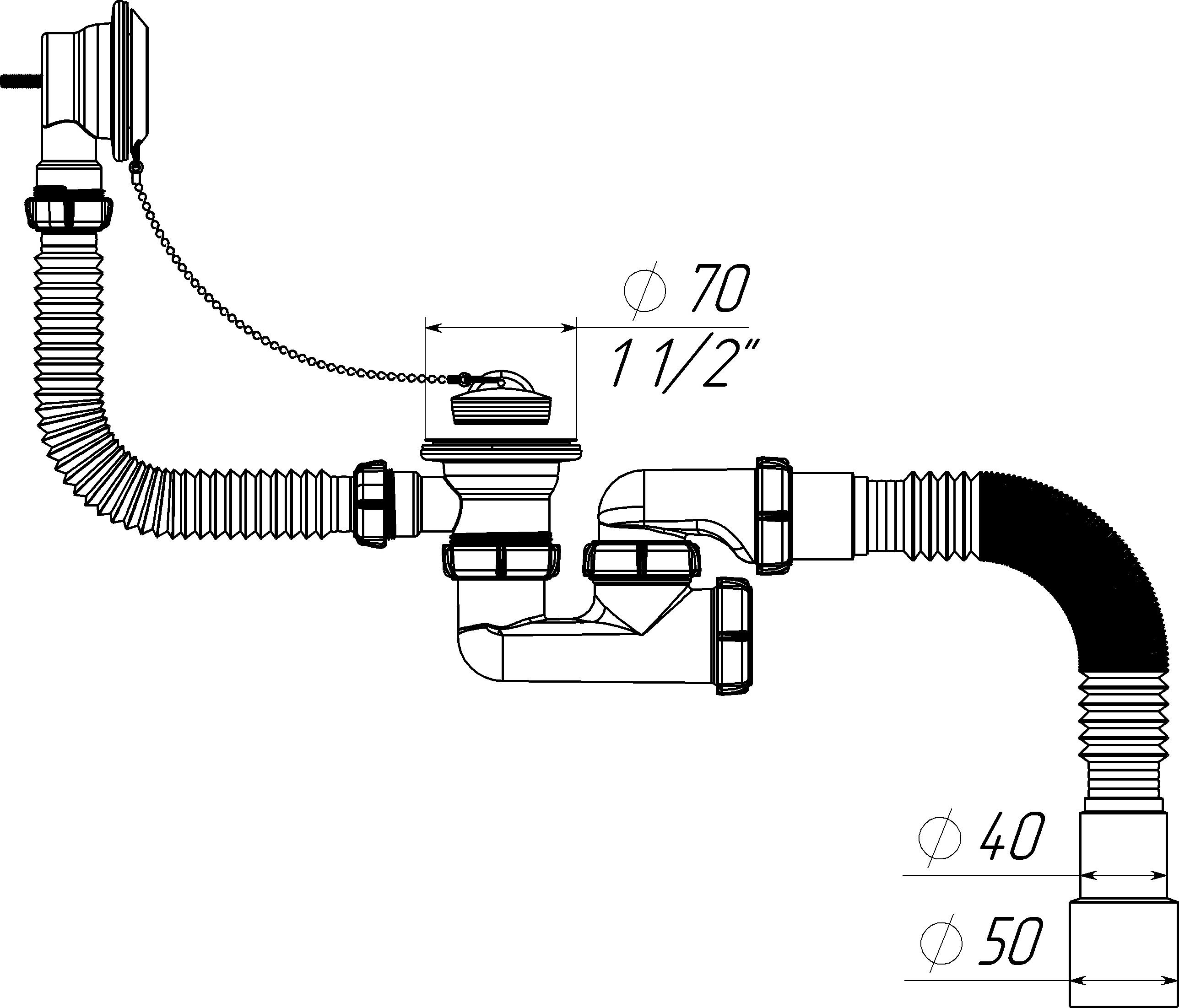 Sifon reglabil pentru cada cu preaplin in cuva cu racord extensibil 40х40/50, Aquant