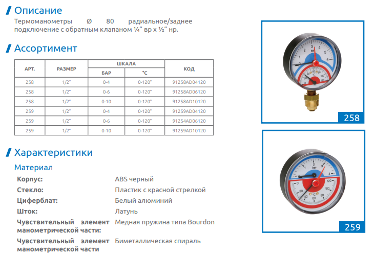 Бренд ICMA, Наименование румынское 91258AD06120-Termomanometru 0-6 Atm, iesire laterala ICMA