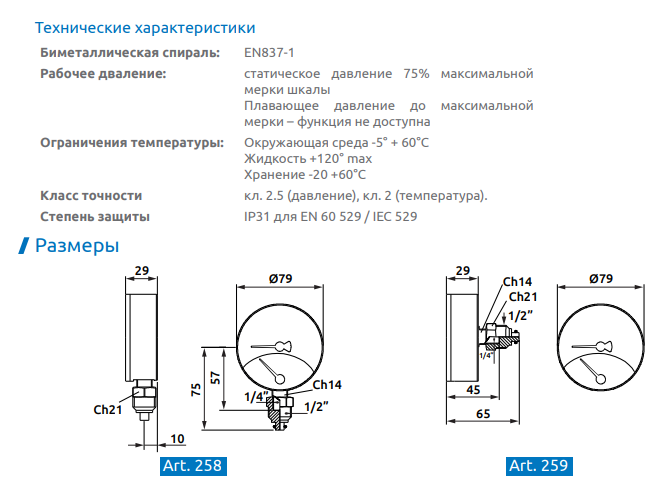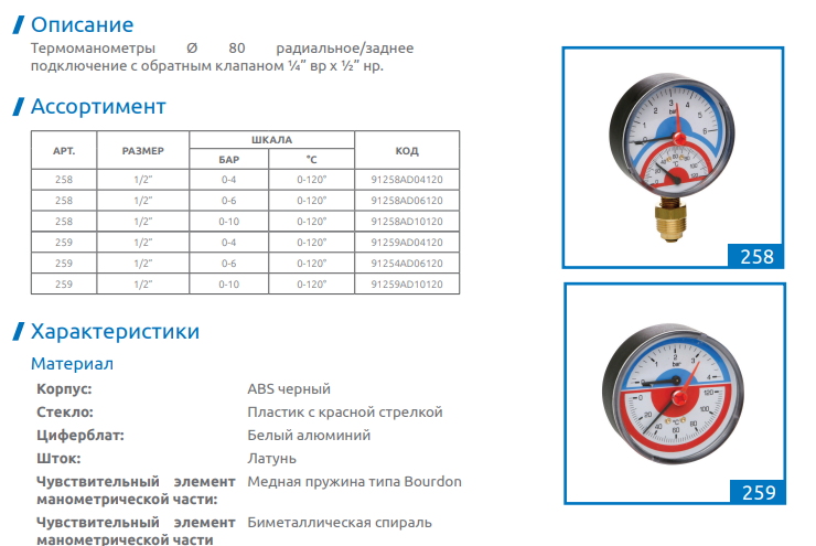 Бренд ICMA, Наименование румынское 91259AD06120-Termomanometru 0-6 Atm, iesire centrala ICMA