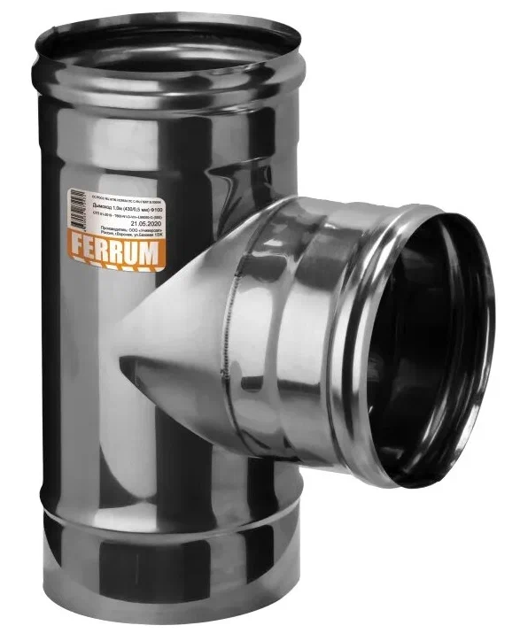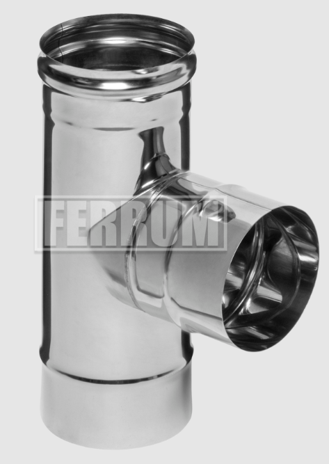 Бренд FERRUM, Наименование румынское Teu la 90° pentru cos de fum mono perete Ferrum D130 (0,5 mm)