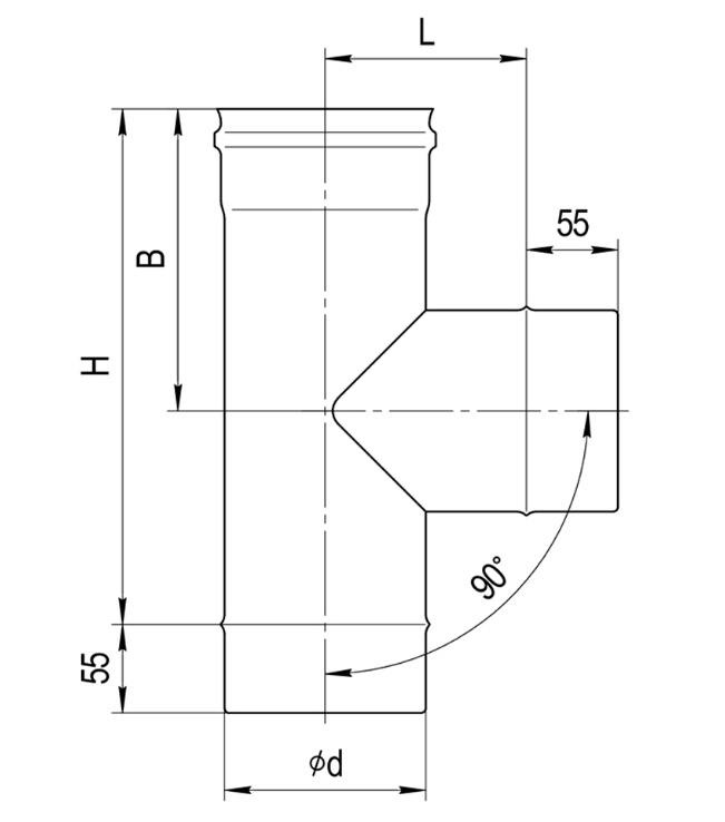 Teu la 90° pentru cos de fum mono perete Ferrum D130 (0,5 mm)